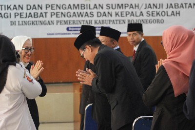 Bojonegoro,atasangin.net – Sebanyak 30 pejabat pengawas dan Kepala Sekolah lingkup Pemkab Bojonegoro di lantik dan di ambil sumpah jabatan. Pelantikan dilaksanakan di Ruang Angling Dharma Gedung Pemkab Bojonegoro, Jumat ( 8/9/2023 ).