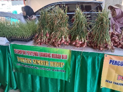 Lebih lanjut Helmy Elisabeth menjelaskan bersama para petani, DKPP, peneliti BRIN dan Panah Merah selaku produsen benih bawang merah melaksanakan percontohan produksi penggunaan benih bawang merah TSS/biji di lokasi percontohan Desa Semenpinggir Kecamatan Kapas. Dari hasil percontohan yang dilakukan tersebut berdasarkan hasil ubinan mencapai kisaran 20 – 29,6 ton/ha bawang merah dalam kondisi basah.