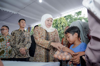 Di dampingi oleh Bupati Tuban Aditya Halindra Faridzky, SE, Gubernur Khofifah berkeliling ke sejumlah stan bahan pangan.” Ada beras, telur, gula, minyak, monggo di tumbas, murah,” serunya kepada masyarakat yang telah memadati kawasan pelataran Pendapa Krida Manunggal Tuban.
