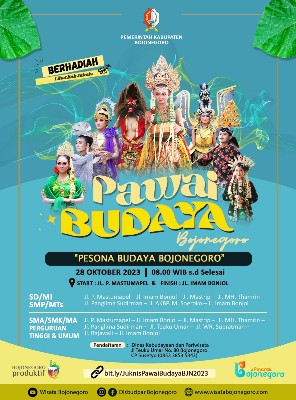 “ Tema Pawai Budaya Tahun 2023 adalah Pesona Budaya Bojonegoro. Peserta akan di bagi menjadi 4 kategori, yakni tingkat SD/MI, SMP/MTS, SMA/SMK/MA/umum dan tingkat komunitas maupun sanggar. Yakni dengan catatan kuota peserta memenuhi syarat dan ketentuan kategori,” bebernya.