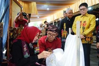 Dalam pameran ekonomi kreatif tersebut terdapat kerajinan batik canting asal Bojonegoro yang langsung mengajak pengunjung untuk mencoba teknik membatik.