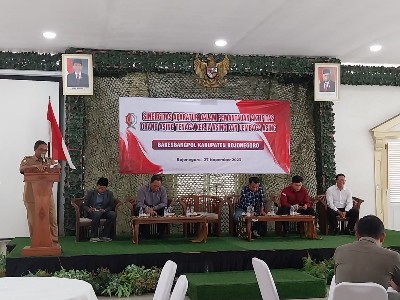 Bojonegoro,atasangin.net – Pemkab Bojonegoro melalui Badan Kesatuan Bangsa dan Politik ( Bakesbangpol ) menggelar sosialisasi pemantauan keberadaan Orang Asing ( OA ) di daerah. Kegiatan sosialisasi bertema Sinergisitas Aparatur dalam Pemantauan Aktifitas Orang Asing, Tenaga Kerja Asing dan Lembaga Asing di Daerah ini di gelar Senin ( 27/11/2023 ) di Gedung Pancasila MCM Hotel Wisata Bojonegoro, Jalan Pemuda Timur.