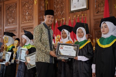 “ Dari jumlah santri yang lulus diambil 25 santri berprestasi di tiap Kecamatan untuk mengikuti Wisuda VI Santri TPA DPD BKPRMI Tuban di Pendapa, totalnya 500 santri dan 500 wali santri,” terangnya.