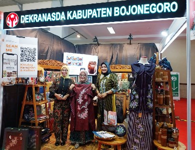 Lebih lanjut, Hidayah menuturkan, Bojonegoro memiliki banyak kekayaan, diantaranya kayu jati. Dan itu tercermin dalam produk unggulan yang dibawa ke Jakarta, diantaranya souvenir kayu jati seperti tumbler, piring, maupun gelas dan tempat sabun cair. Selain itu juga ada produk kerajinan batik khas Bojonegoro, salah satunya fashion dan batik painting menjadi busana.